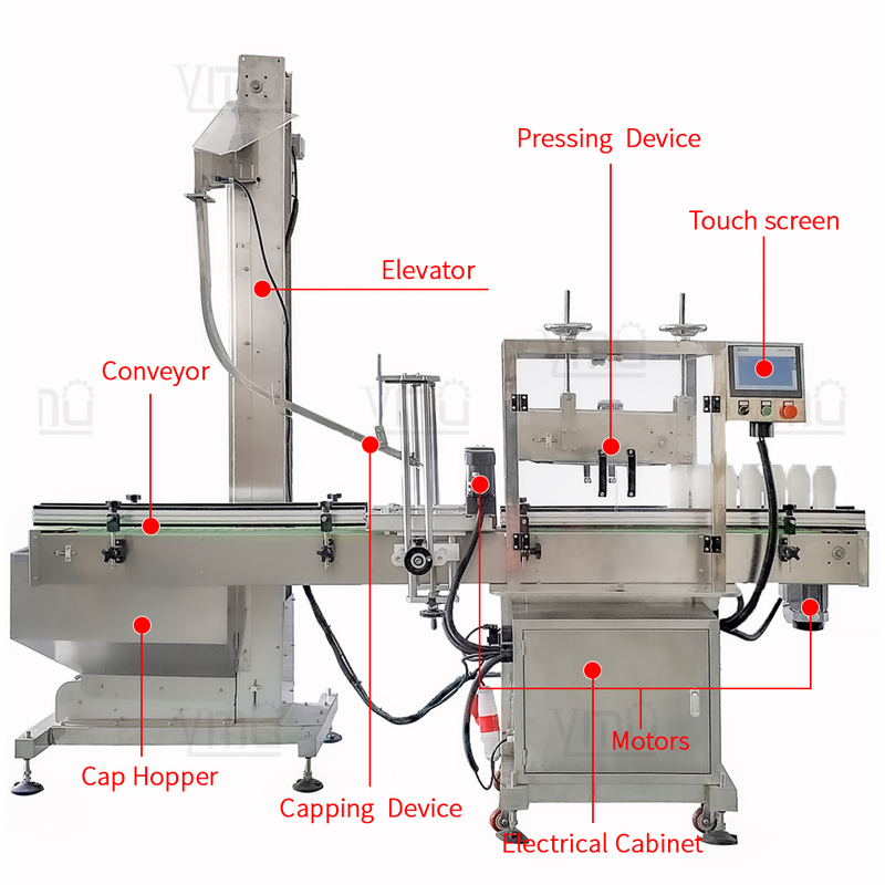 | Hệ thống điều khiển | PLC (Mitsubishi/SIEMENS) + màn hình cảm ứng Hỗ trợ nhiều ngôn ngữ (Tiếng Anh, Tiếng Tây Ban Nha, Tiếng Đức, v.v.) Lưu trữ hơn 50 công thức sản phẩm (chuyển đổi một cú nhấp chuột giữa các loại nắp/chai khác nhau) |